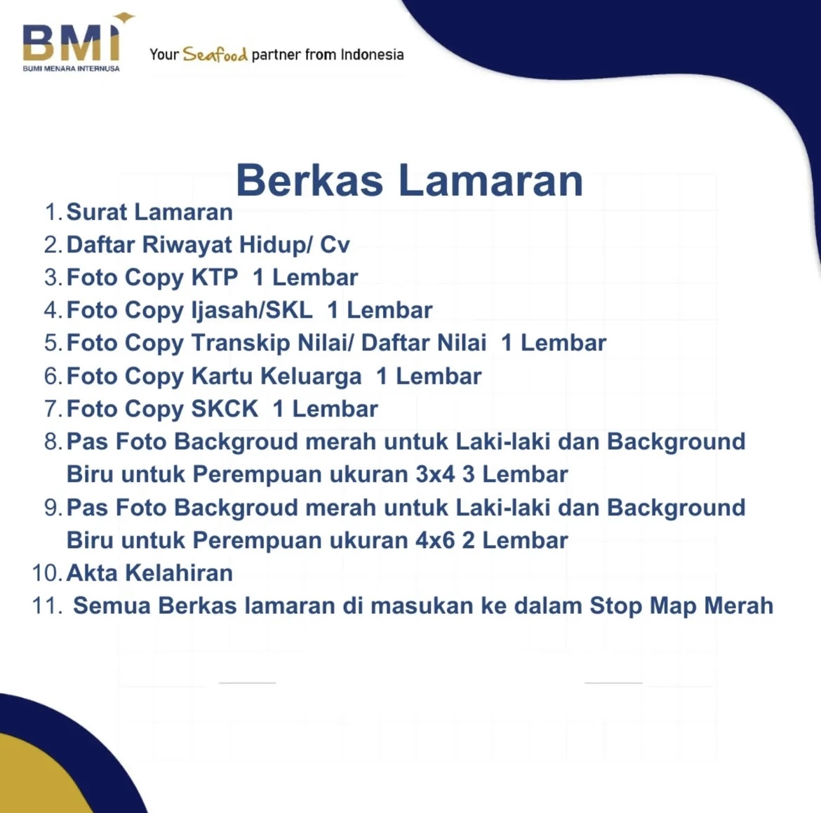 Siapkan berkas lamaran kerja kalian, untuk syarat dan ketentuannya bisa dilihat di postingan ya.